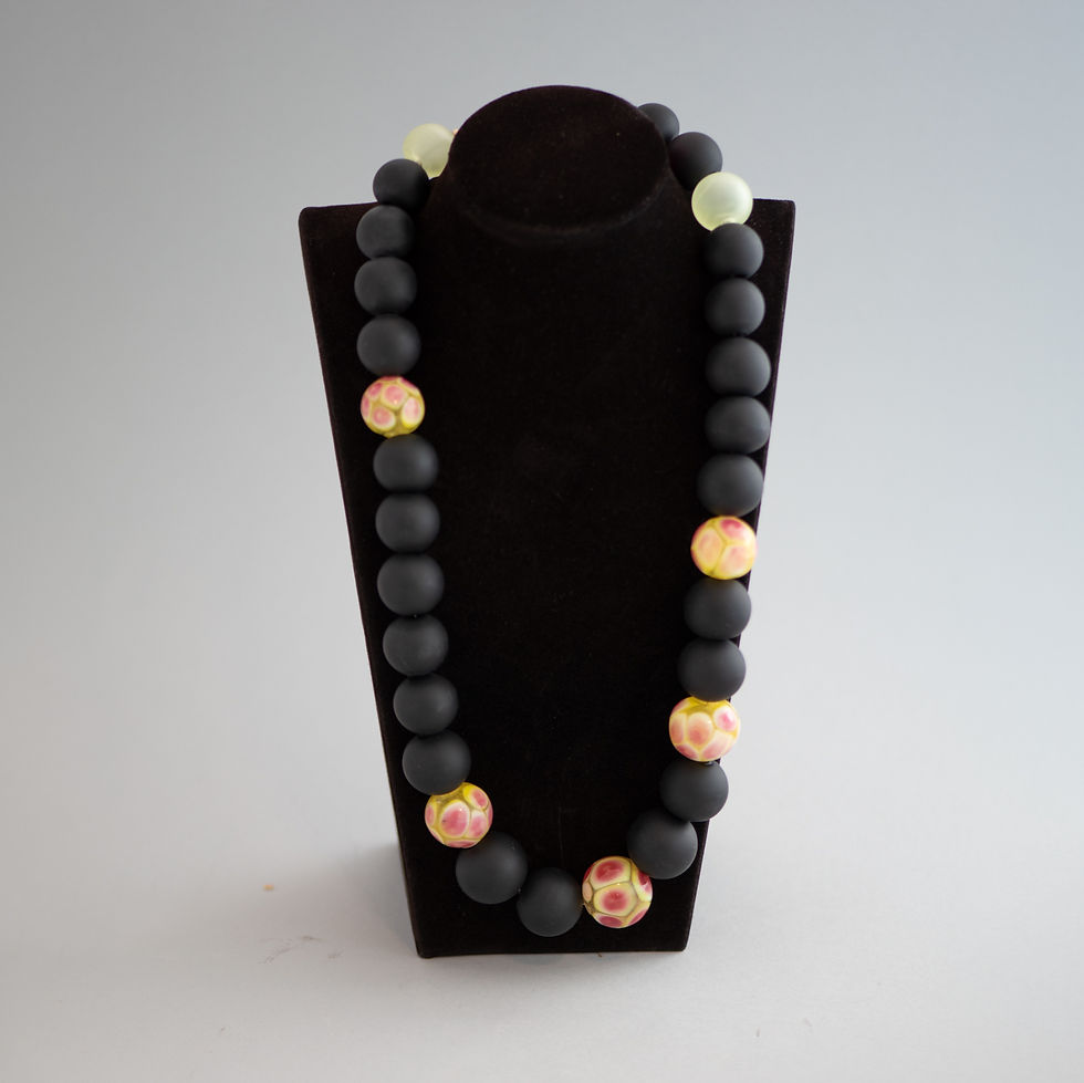 Kette mit schwarzen matten und goldglänzenden Perlen